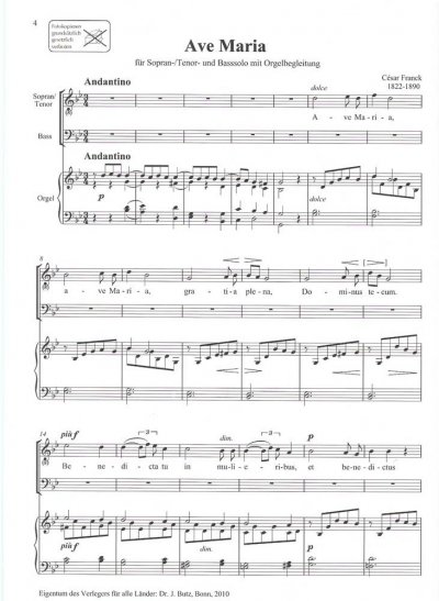 Ave Maria von César Franck für SAB & Orgel...