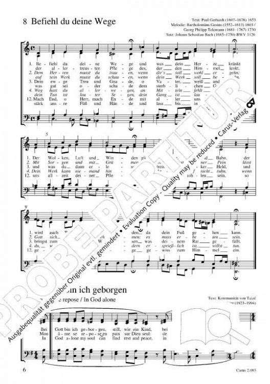 - Befiehl du deine Wege - Gesius - Telemann - Bach