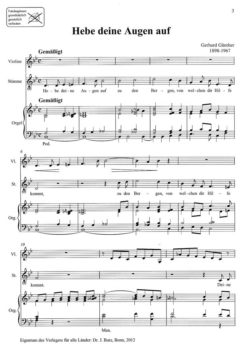 für mittlere Singstimme (Mezzosopran oder Bariton), Violine und Orgel mit Pedal