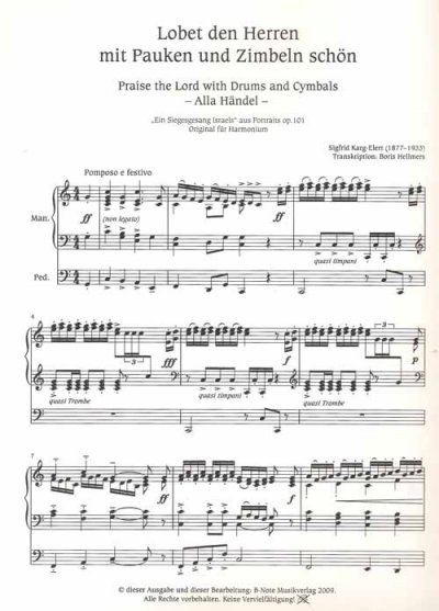 von Sigfrig Karg Elert 1877-1933 Original für Harmonium komponiert, für Orgel transkribiert von Boris Hellmers Festliches Stück in C-Dur, für Manual & Pedal Schwierigkeitsgrad mittel 7 Seiten, B-Note Verlag