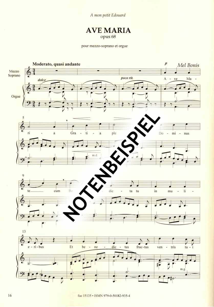 - Cantique à Marie - für Tenor(Sopran), Harfe (oder Klavier) & Orgel