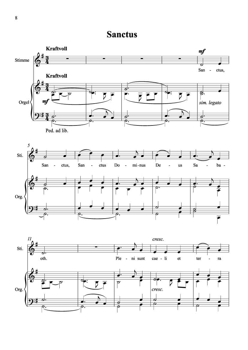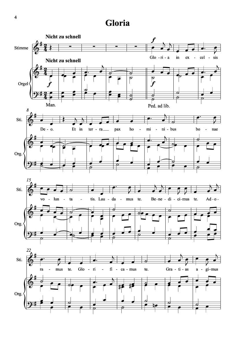 Missa brevis in G-Dur für mittlere Singstimme und Orgel