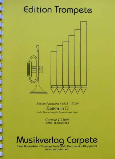 bearbeitet für Orgel (Man & Ped) und Trompete in B (oder C) Corpete Musikverlag, Wuppertal weiters ist der Pachelbel Canon auch in folgenden Ausgaben erhältlich für