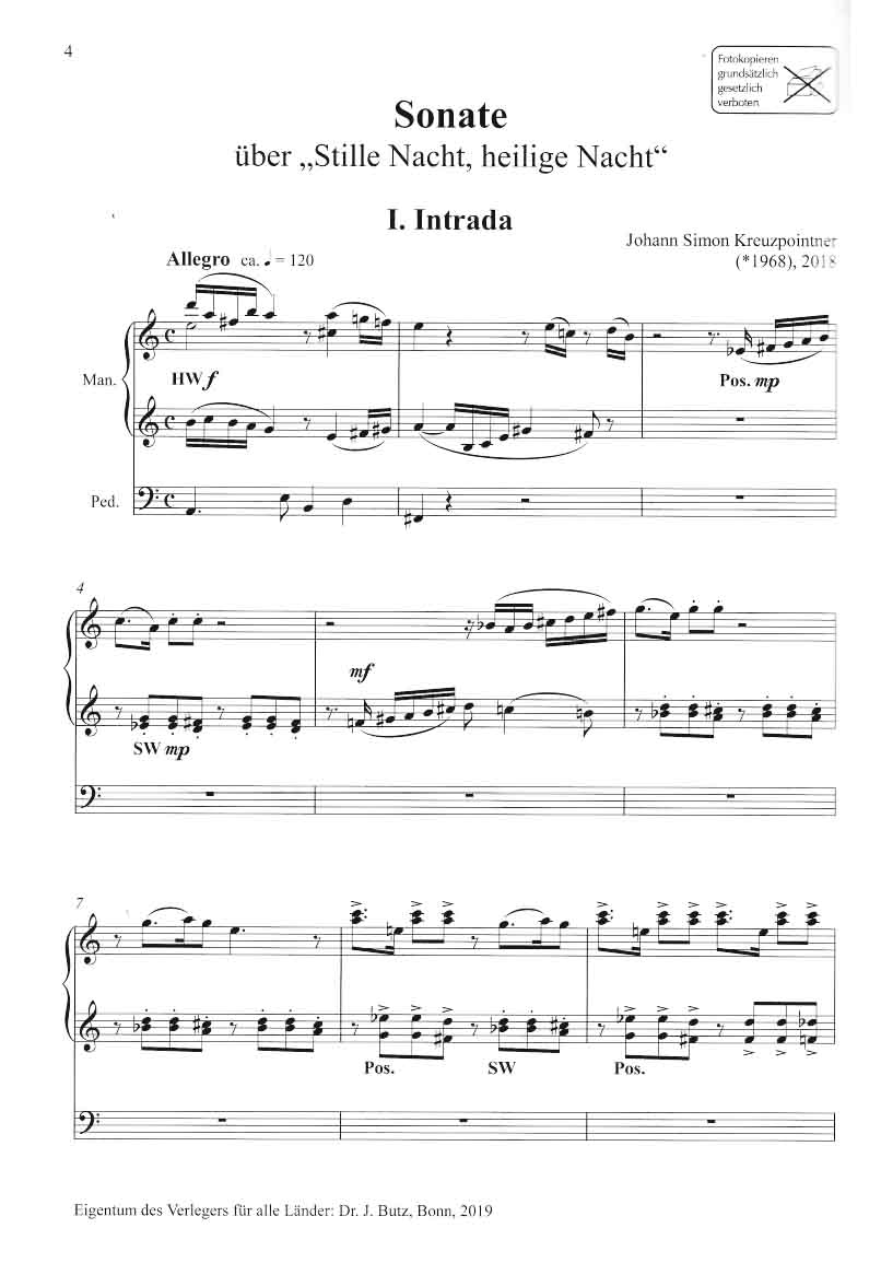 Sonate über "Stille Nacht" von Johann Simon Kreuzpointer, geb 1968